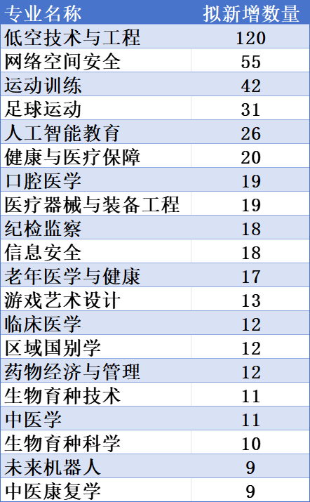 2025年度普通高等学校拟新增本科专业数量前20的专业名单,数据来源于高等教育司。