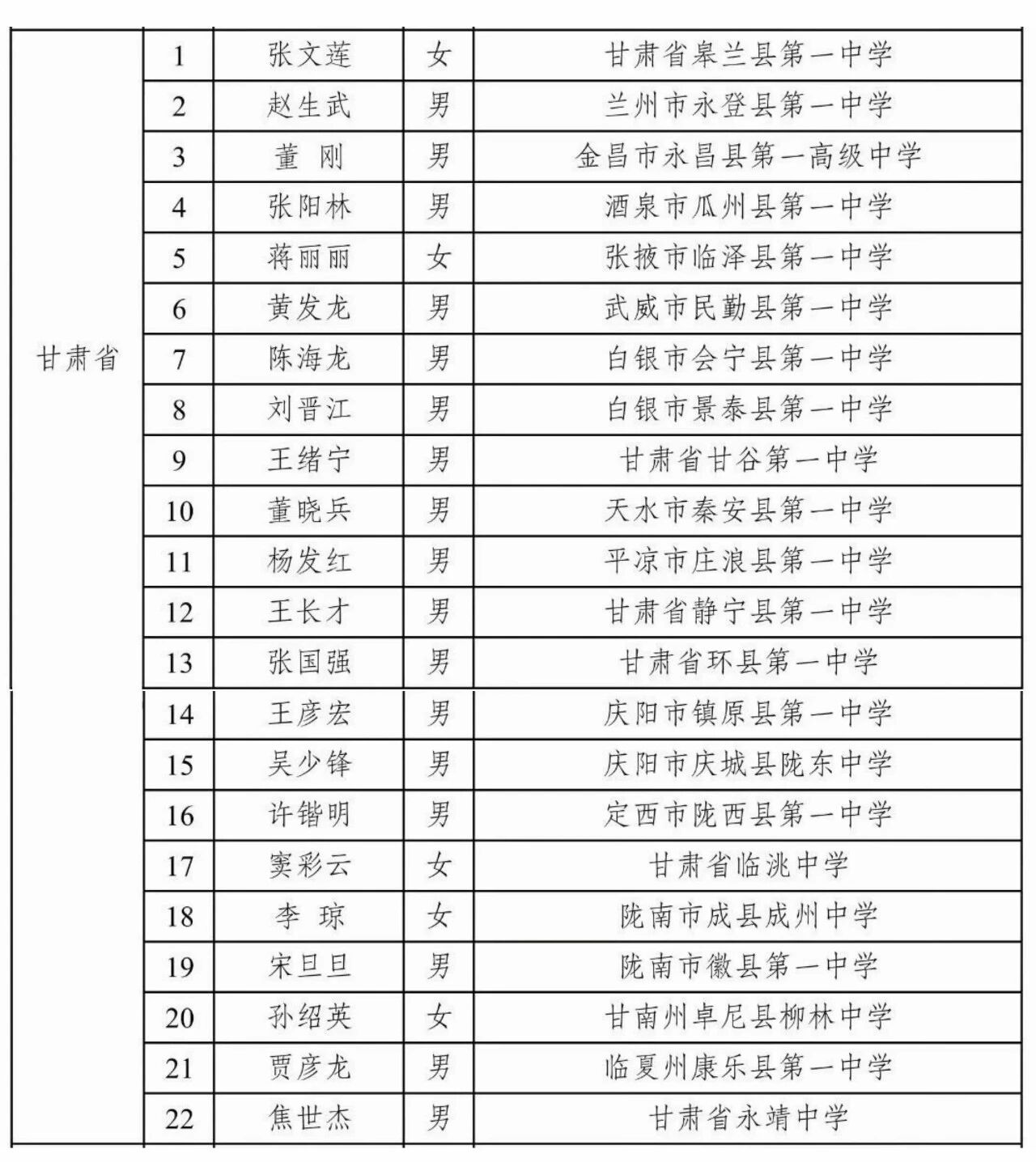 近日,教育部印发《关于公布全国县域普通高中头雁教师岗位计划人选的通知》,公布首批全国县域普通高中头雁教师岗位计划入选教师600人,其中甘肃入选22人。跟甘小教一起来看名单——