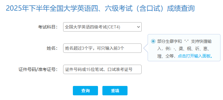 已支持“考生姓名+身份证件号码”的成绩查询方式,成绩查询结果中将有准考证号。