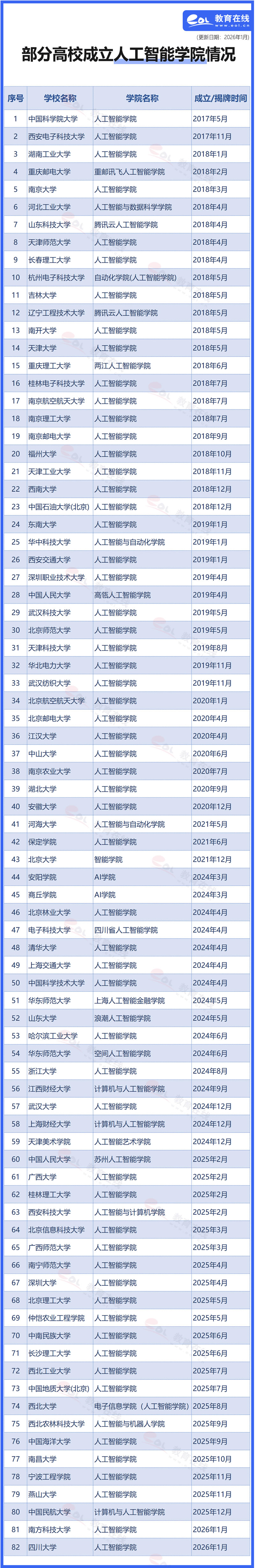 截至目前,全国已有80余所高校先后布局人工智能学院。